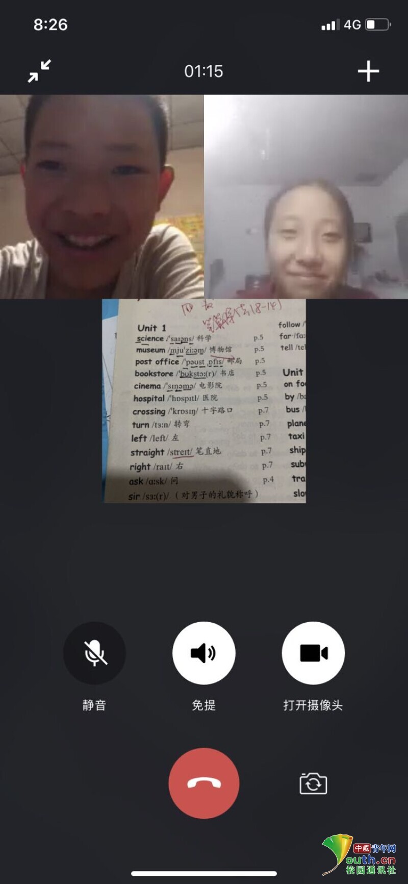 图为“七彩圆梦”魅力甲骨文支教团志愿者在上线上英语课。中国青年通讯员 夏毓通 摄