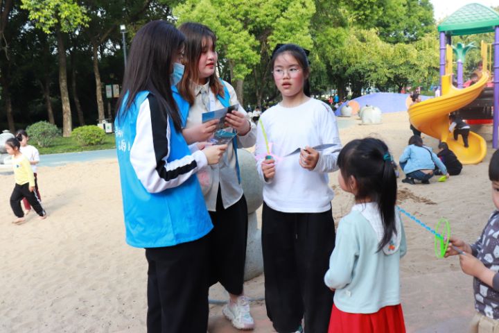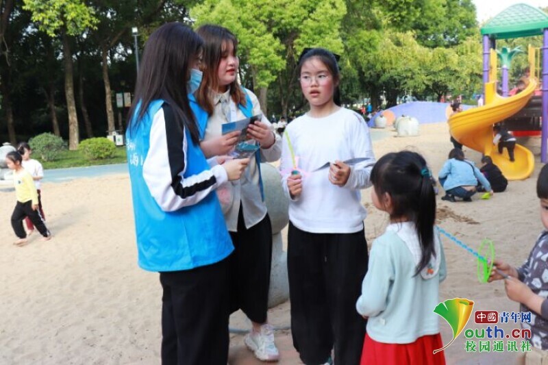 图为志愿者向游客宣传河长制的重要意义 。中国青年网通讯员 王璐璐 摄