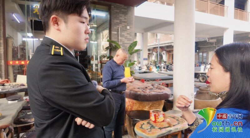 图为广东肇庆端砚手艺人家为实践队员讲解端砚制作技艺。李泽宇 供图