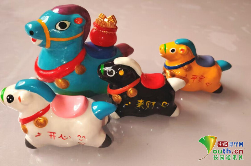 图为专为马年设计的“开心”“来财”“平安”的小马造型泥咕咕。梁诗婷 供图