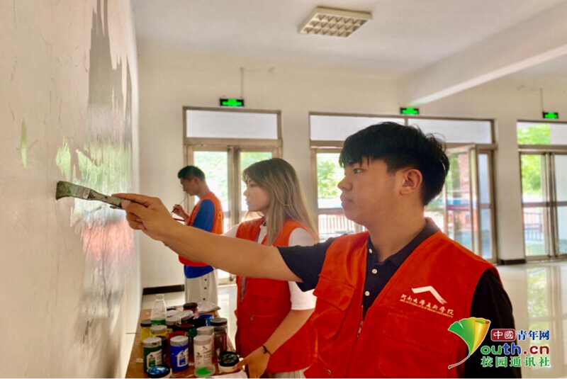 图为团队成员进行墙绘创作。中国青年网通讯员 王梦瑶 提供