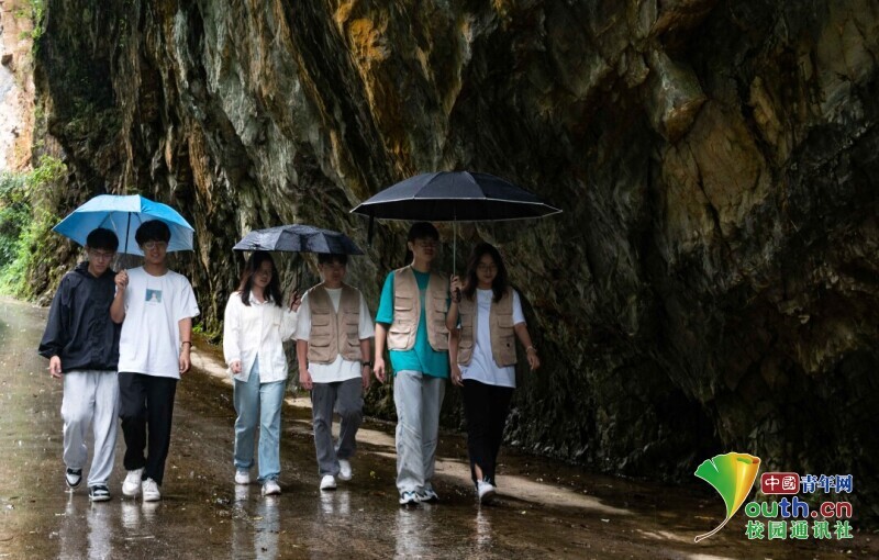 图为实践团成员走在进入下庄村的“天路”上。中国青年通讯社通讯员 王传启 供图