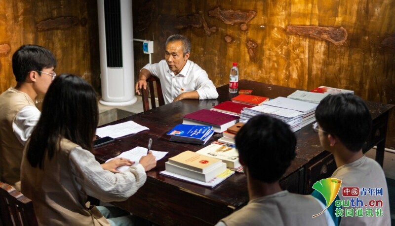图为实践团成员在采访时代楷模毛相林爷爷,探寻乡村振兴中激昂奋进的砥砺精神。中国青年通讯社通讯员 王传启 供图