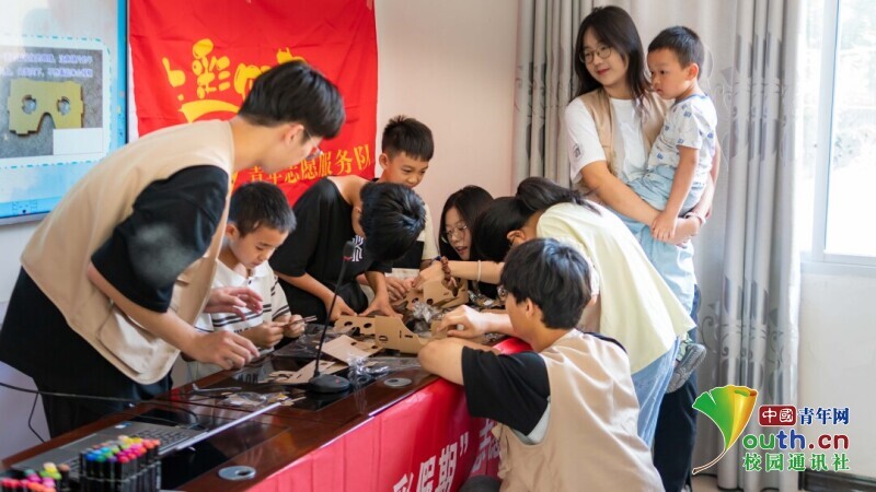 图为实践团成员与孩子们一起组装VR眼镜,探寻科技背后的奇妙世界。中国青年通讯社通讯员 王传启 供图