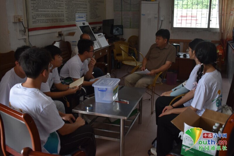 图为实践团队采访村委干部。中国青年网通讯员 陈昱静 供图