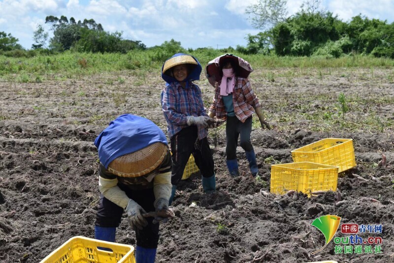 图为农民正在采摘番薯。中国青年网通讯员 王盛 供图