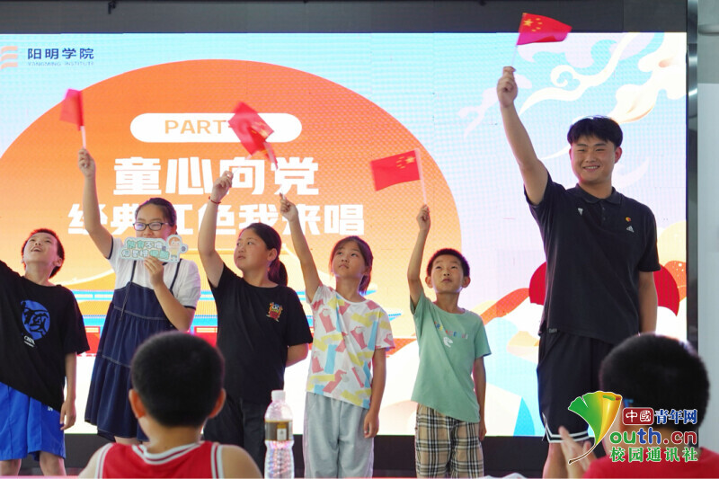 红色课堂上,团队成员与小朋友共同合唱红色歌曲。中国青年网通讯员 闵胜男 供图