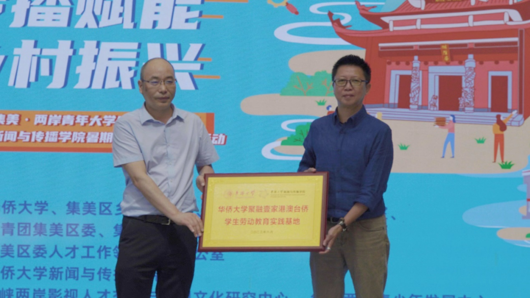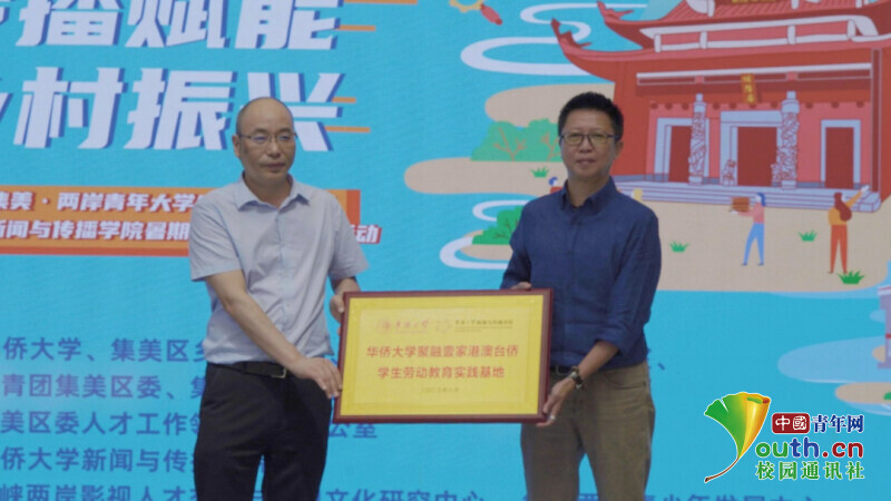 活动现场还进行了华侨大学聚融壹家港澳台侨学生劳动教育实践基地授牌仪式和授旗仪式。基地以华侨大学新闻与传播学院学院港澳台侨学生为主体,规划围绕乡村振兴、两岸研学、文创文旅、新媒体短视频、电商直播等5大主题进行实践课程和实操劳作体验,以摸索并形成具备华大特色的两岸青年大学生劳动教育实践模式。本次两岸大学生乡创研学营就是劳动教育实践基地建设的具体举措 。