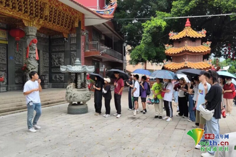 7月4日下午,研学营前往集美区城内村和双岭村,探访城内城隍庙、拱辰门、苎溪古桥、观音寺等文化遗址,感受两岸血浓于水之情深,了解村落发展变迁历程,寻味乡村生活气息,体会两岸青年共同助力乡村振兴的卓越贡献。