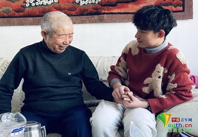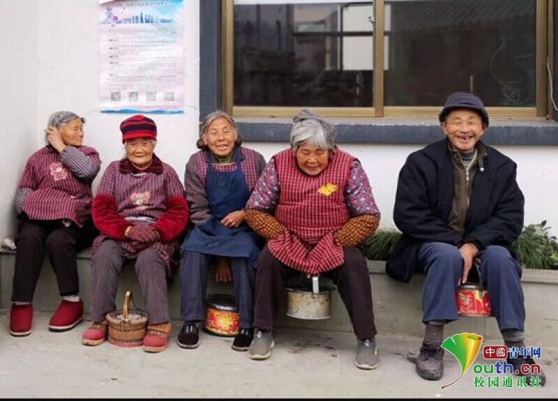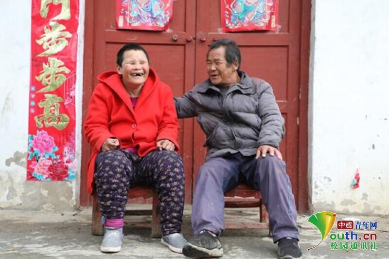 图为志愿者抓拍的夫妻相互照顾,其中老奶奶眼睛看不到,映入眼帘的是两人欢声笑语的情景。中国青年网通讯员 许爽