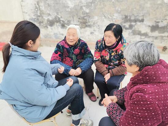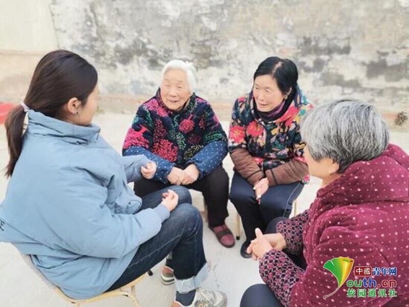 图为志愿者在敬老院陪老人们聊天,听他们讲述自己的故事。中国青年网通讯员 冯庆恩 摄