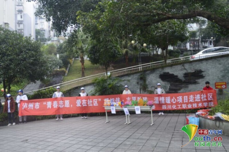 中国青年网泸州1月16日电 (通讯员 张富贵 曾诚宇 涂子阳)社会在进步,国家在发展,青年的步伐永远紧紧跟随党的步伐。2019年12月22日四川化工职业技术学院的青少年队在附近小区举行了爱心义卖的活动;2020年的6月20日四川化工职业技术学院的志愿者进入敬老院为老人们服务。奉献爱心与快乐,让社会多一分幸福的色彩,青少年们首当其冲。