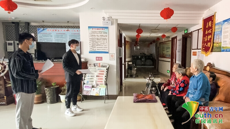图为志愿者为老人演讲 中国青年网通讯员 周昕然 摄