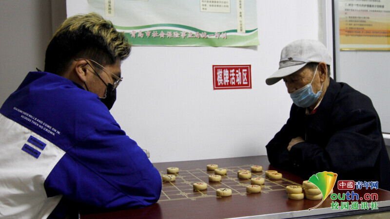 图为志愿者陪老人下棋 中国青年网通讯员 周昕然 摄