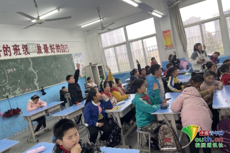 ??图为在讲节约用水知识时小朋友积极的回答志愿者老师问题。中国青年网通讯员 李金玉 供图