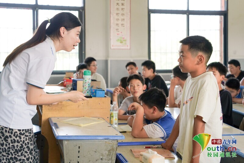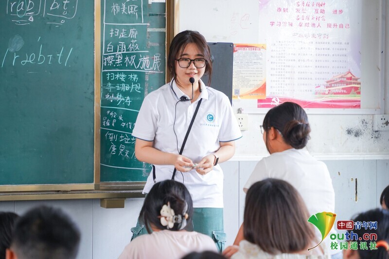 图为实践队老师提问学生英语词汇。赵书勤 供图