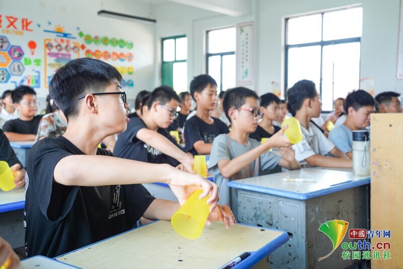 图为音乐课堂上学生表演“杯子舞”。赵书勤 供图