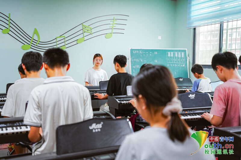 图为音乐课堂上实践队老师教授电子琴演奏。艾宇佳 供图