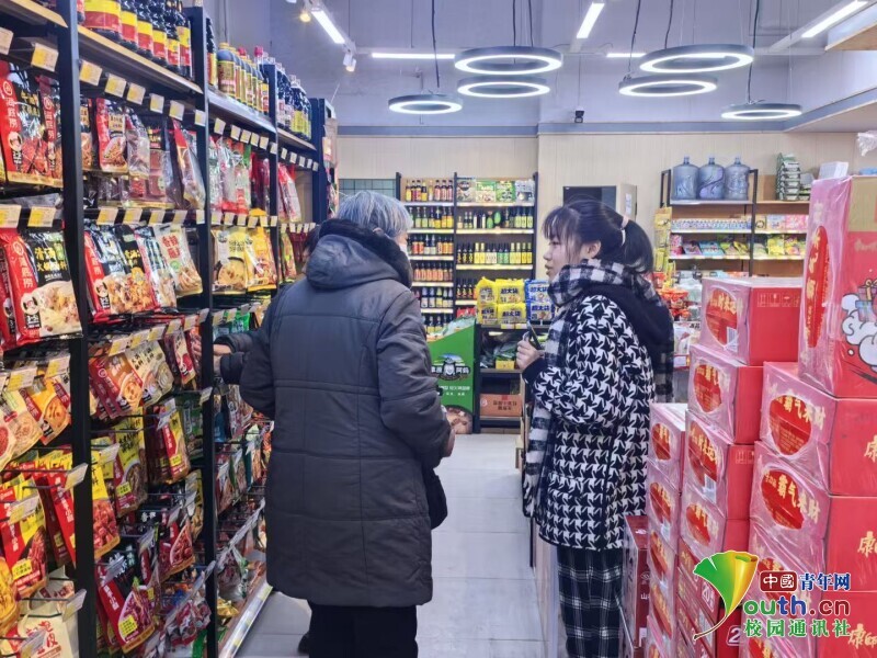 图为实践团在新新园超市与老人交流。项子晏 供图