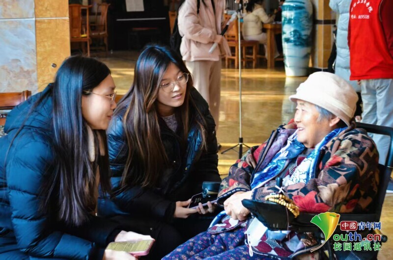 图为实践团在华仕山庄养老院拜访95岁老人。杜茂瑜 供图
