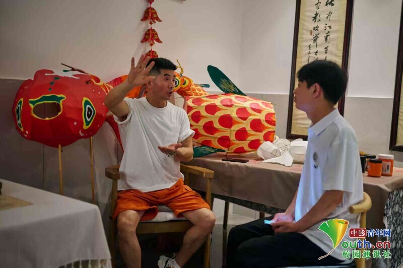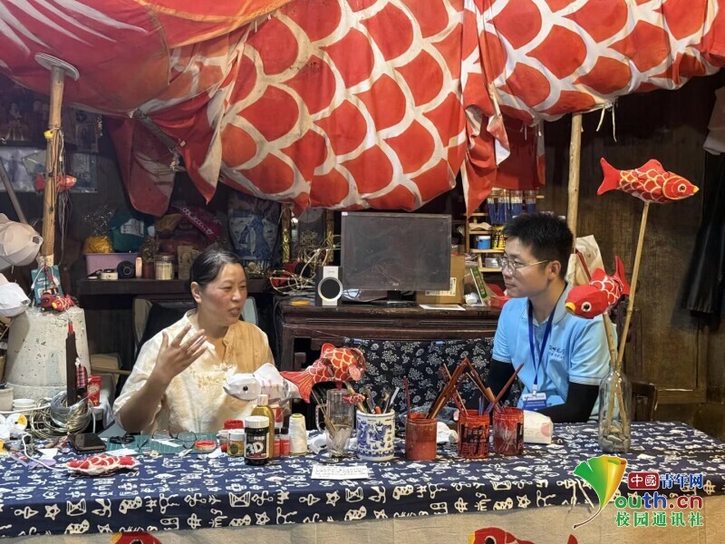 图为渔梁鱼灯传承人徐继丽为团队成员讲解鱼灯制作过程。胡雨卉 供图