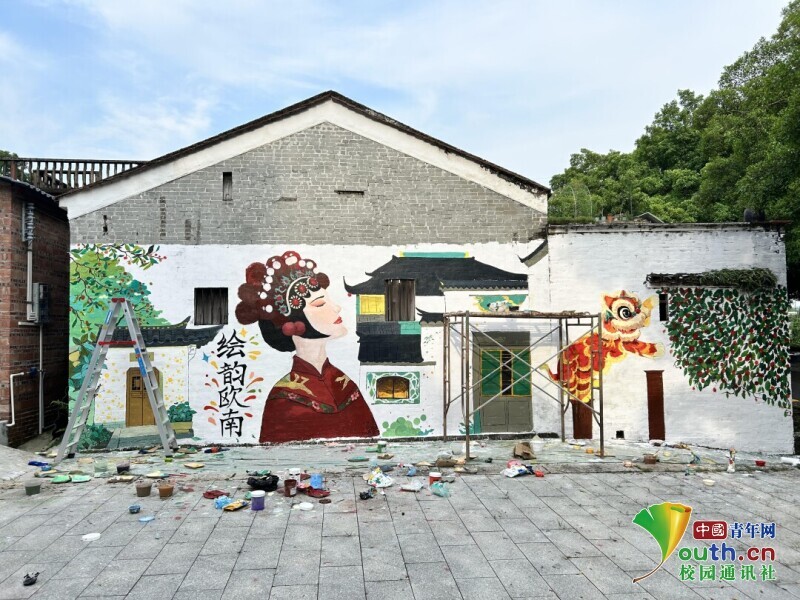 老墙焕彩换新衣,裂缝巧变“艺术彩蛋”。暑假期间,广东省佛山市三水区云东海街道欧南村迎来了广东财经大学“青绘焕境”百千万工程突击队。这支特殊的“乡村化妆师”队伍携带颜料画笔,在村落墙面上精心勾勒荷塘月色、细腻描摹粤曲名家,让非遗与乡村景致碰撞出独特火花,为“百千万工程”注入蓬勃青春活力。