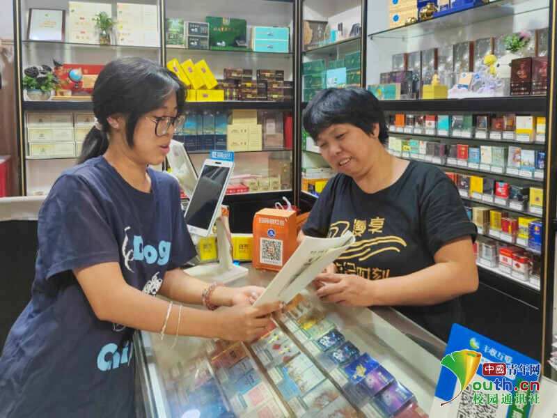 图为实践团成员与妇女创业代表张姐交流。孔一曦 供图