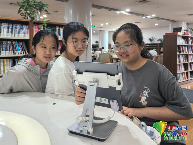 图为实践团成员在蚂蚁岛公共阅览室检索《军港之夜》资料。邱佳婧 供图