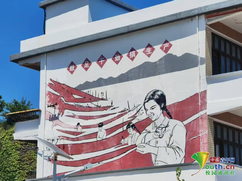 图为蚂蚁岛居民住宅外墙的红色宣传画。毛小艳 供图