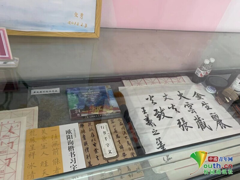 图为黄文秀先进事迹展览馆中展示的黄文秀绘画作品。陈芳 供图