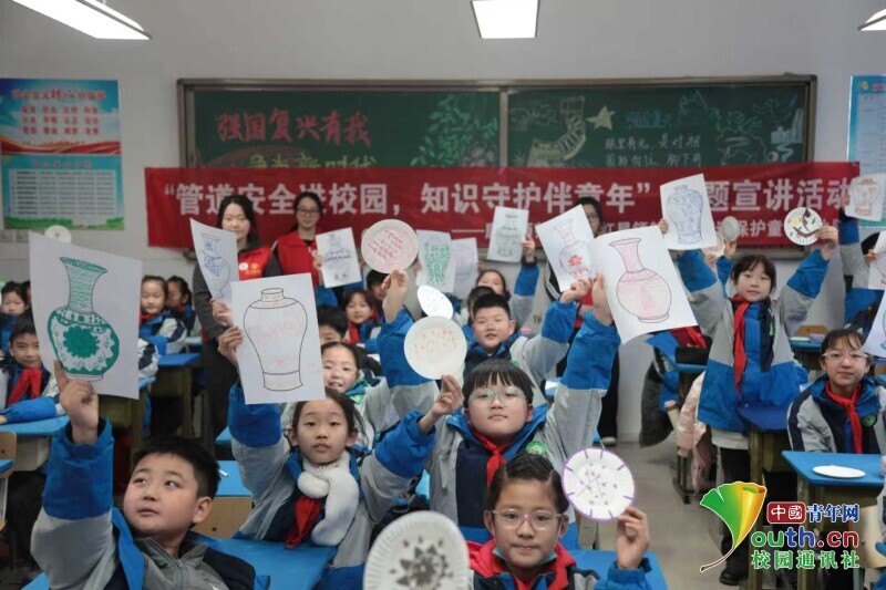 活动伊始,志愿者们在三年级教室带来了一堂生动的“青花瓷艺术启蒙课”。课程从“瓷器中的中国故事”展开,讲解青花瓷的发展历程与文化象征,并通过图文展示莲花、缠枝、山水等经典纹样所蕴含的美好寓意。