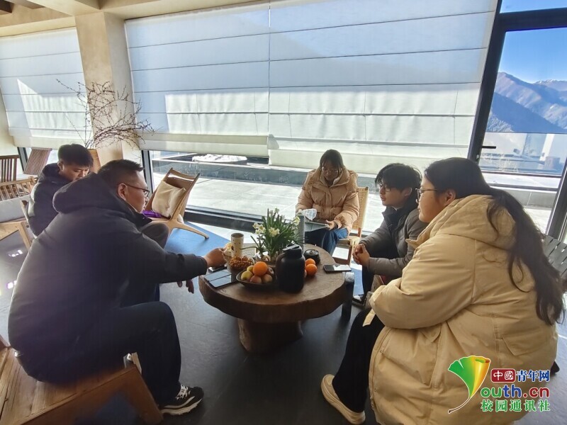 图为实践团成员与四姑娘山民宿经营者进行访谈。谢沛 供图