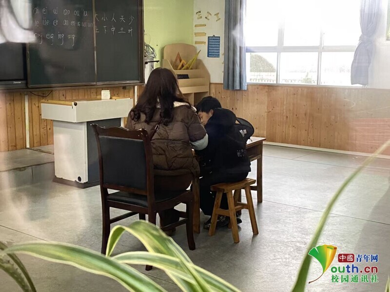 察觉到实践队员们的目光,班主任轻轻走了过来,特意放柔了声音介绍:“这孩子有点特殊,性格比较内向,你们这几天要是有空,多陪陪他就好。”得知他的情况后,实践队员们默默记下班主任的叮嘱,开始尝试用温柔的方式靠近他。