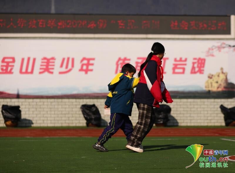 图为高年级学生和孩子一起玩耍。程弦弦 供图