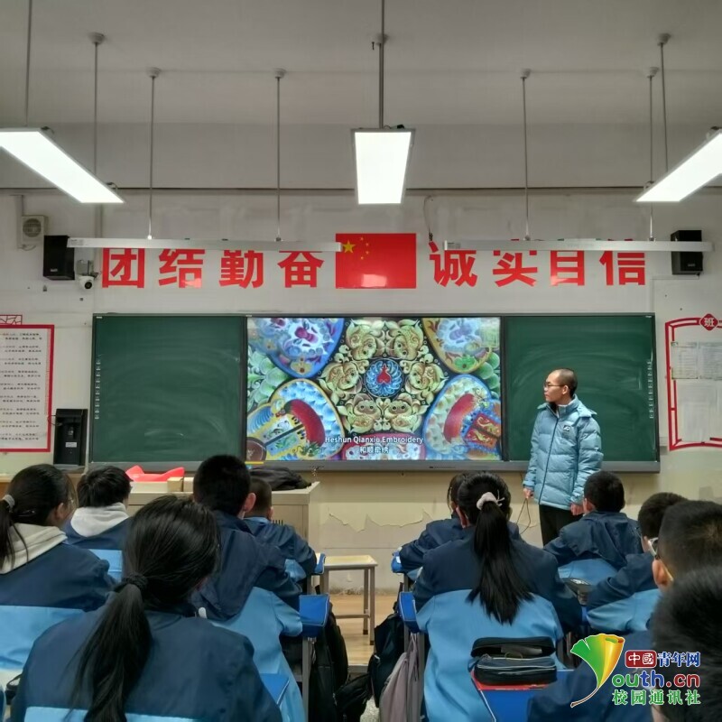 图为和顺牵绣筑梦实践团队长入校宣讲。白天阳 供图
