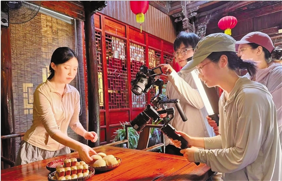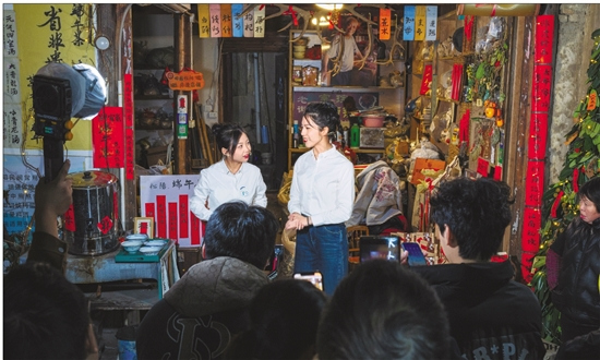 浙江外国语学院学生在衢州杜泽老街拍摄非遗短片《记得》。图片由受访者提供